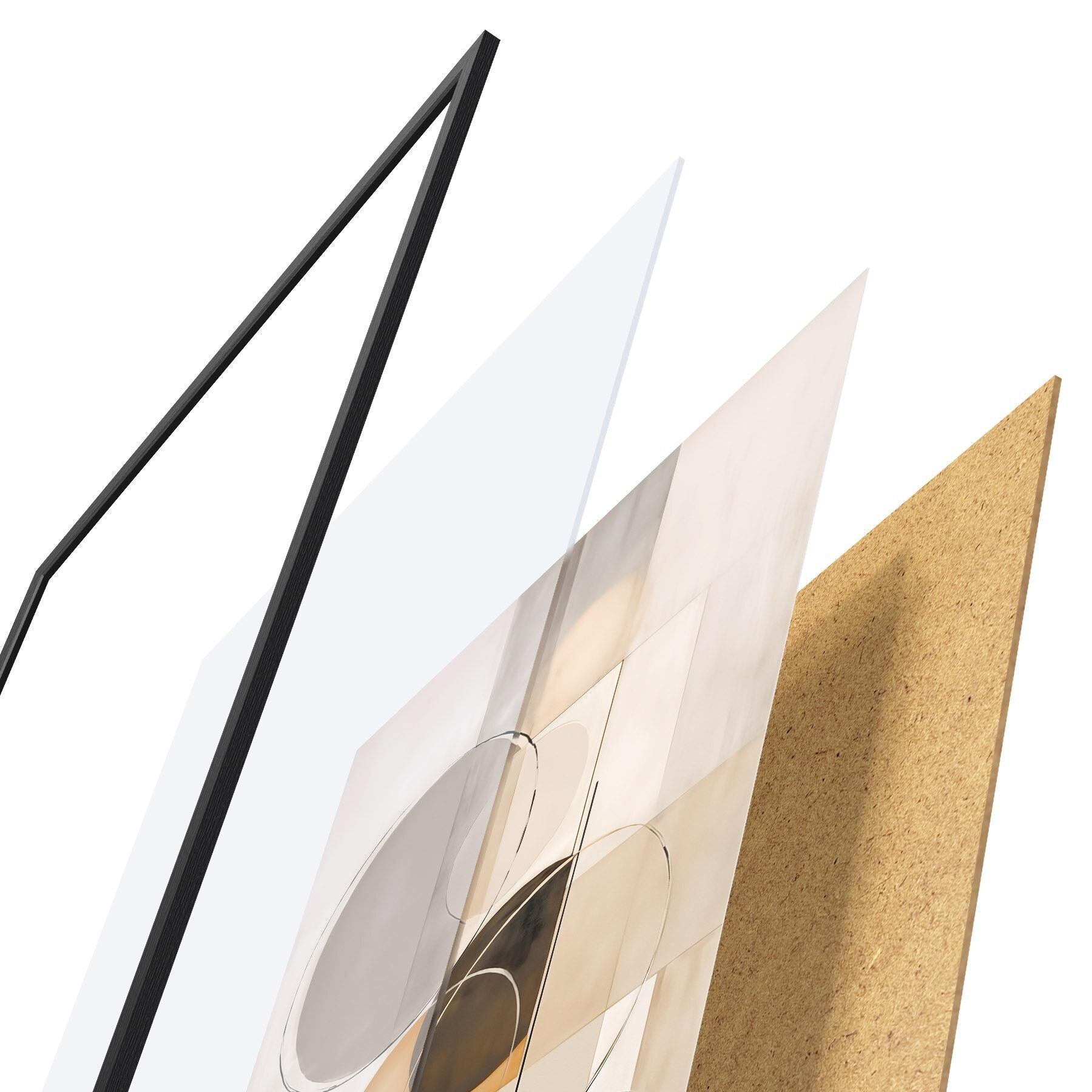 A poszter keretből, plexiből, nyomtatott képből és forgácslap hátlapból áll. A poszter a hátoldalon található rögzítőknek köszönhetően azonnal felakasztható a falra.