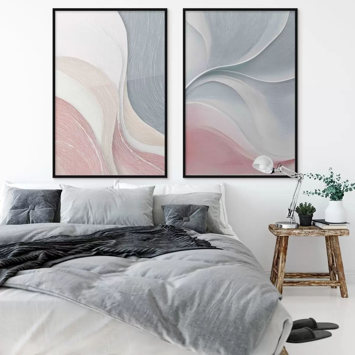 Plakát a sziklán Absztrakt hullámok rózsaszín-bézs-kék árnyalatokban d00874