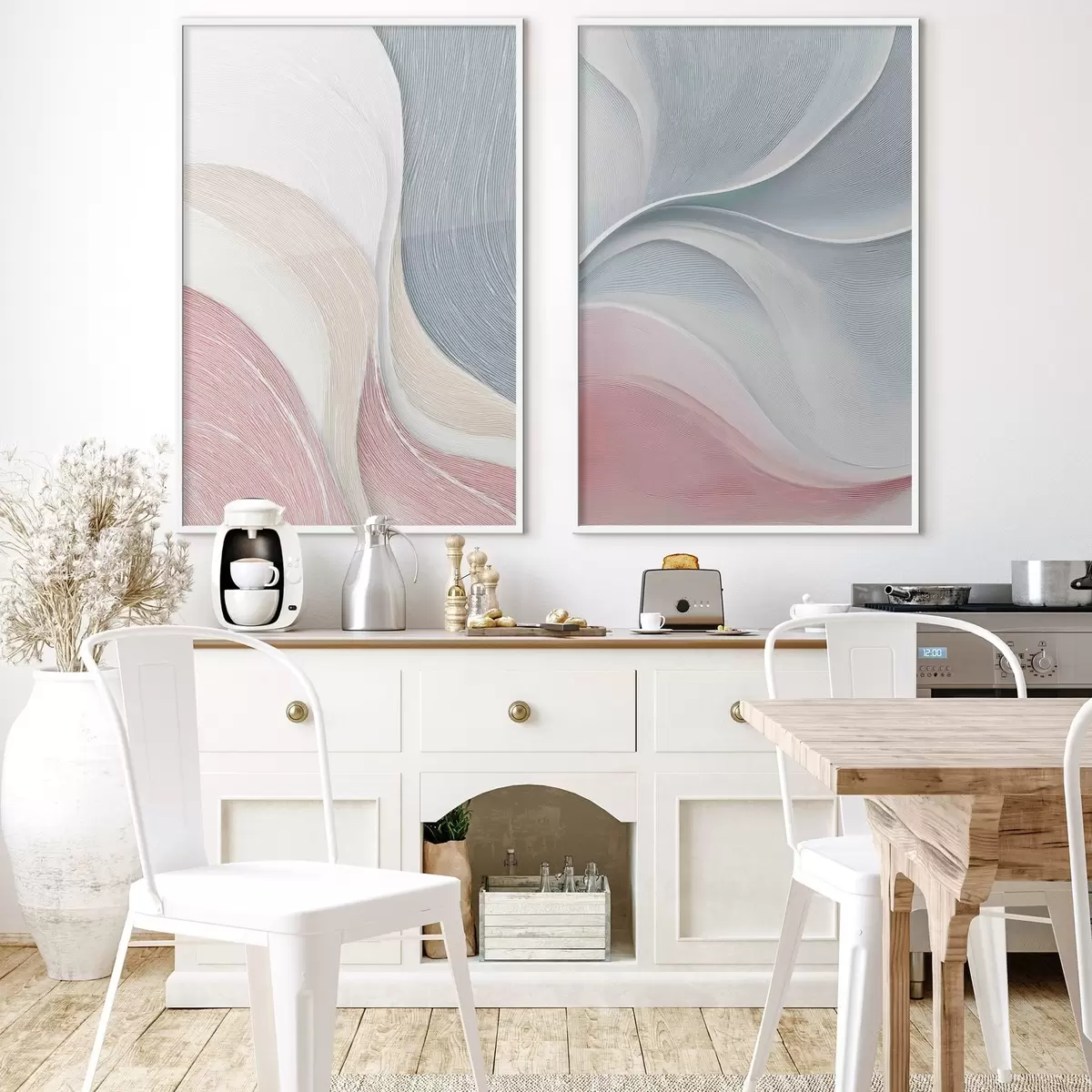 Poster Absztrakt hullámok rózsaszín-bézs-kék árnyalatokban Nr d00874