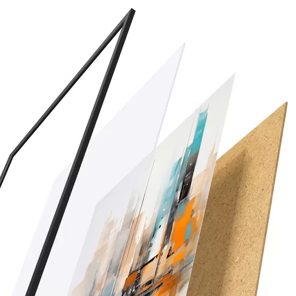 A poszter keretből, plexiből, nyomtatott képből és forgácslap hátlapból áll. A poszter a hátoldalon található rögzítőknek köszönhetően azonnal felakasztható a falra.