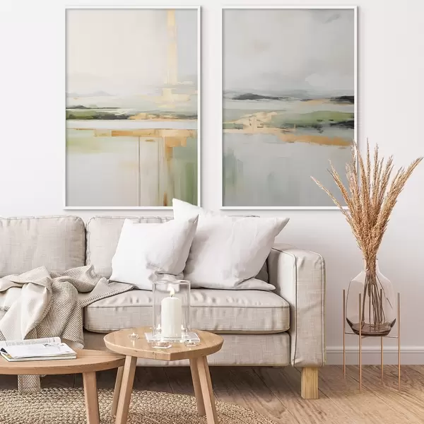 Poster Absztrakt táj sárga akcentussal, minimalista kompozíció földből, vízből és égből, tompított színekkel Nr d00877