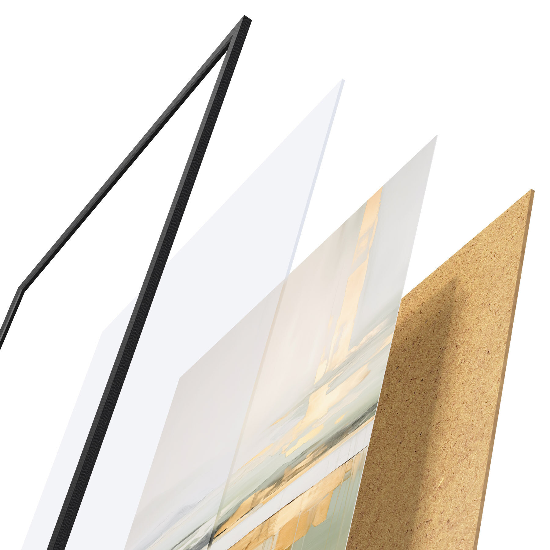 A poszter keretből, plexiből, nyomtatott képből és forgácslap hátlapból áll. A poszter a hátoldalon található rögzítőknek köszönhetően azonnal felakasztható a falra.