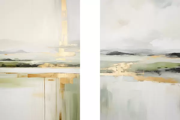 Poster Absztrakt táj sárga akcentussal, minimalista kompozíció földből, vízből és égből, tompított színekkel Nr d00877