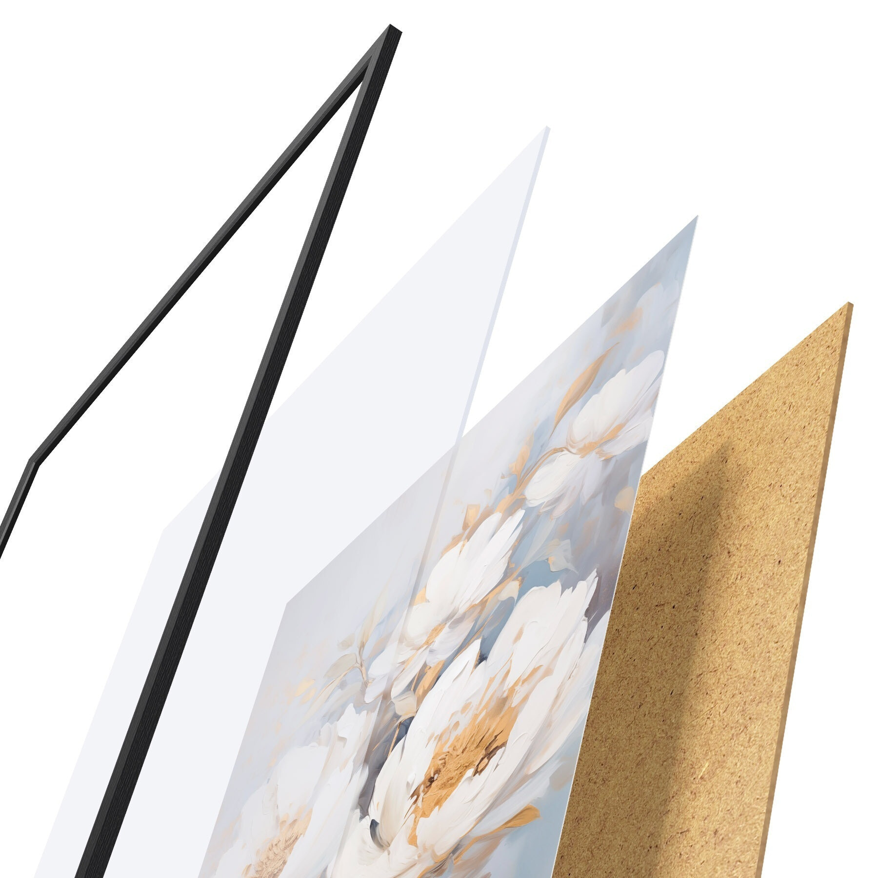 A poszter keretből, plexiből, nyomtatott képből és forgácslap hátlapból áll. A poszter a hátoldalon található rögzítőknek köszönhetően azonnal felakasztható a falra.