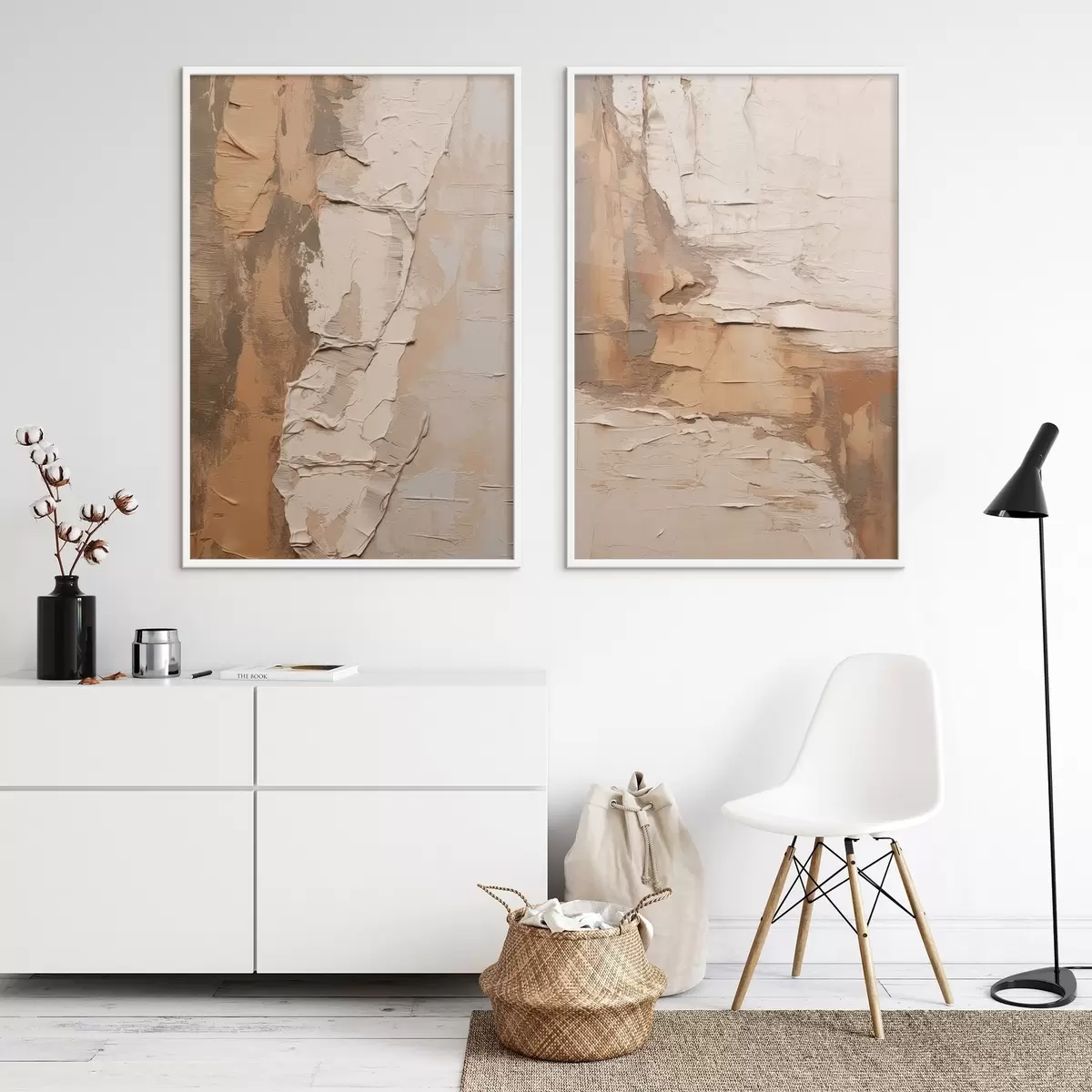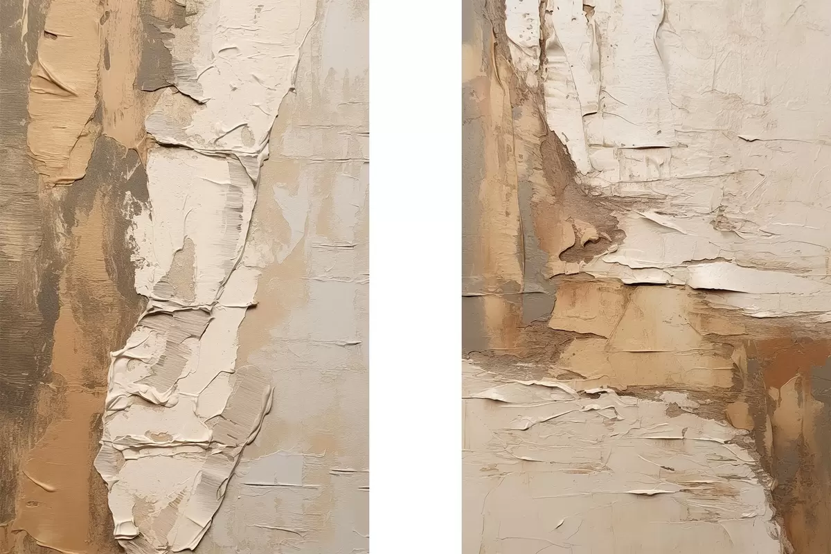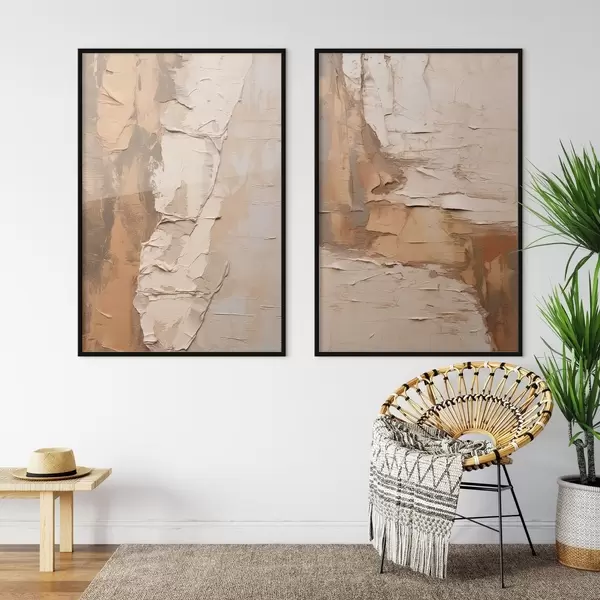 Plakát a sziklán Absztrakt festmény vastag ecsetvonásokkal, bézs és barna tónusokkal, texturált felülettel, semleges színpalettával d00879
