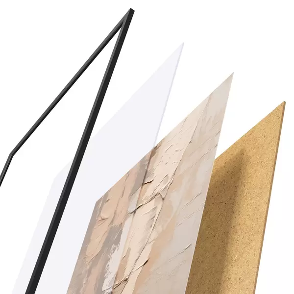 A poszter keretből, plexiből, nyomtatott képből és forgácslap hátlapból áll. A poszter a hátoldalon található rögzítőknek köszönhetően azonnal felakasztható a falra.