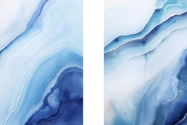 Plakát a sziklán Absztrakt kék-fehér achátminta, kavargó vonalak és színátmenetek, sima textúra, modern művészet, minimalista d00888