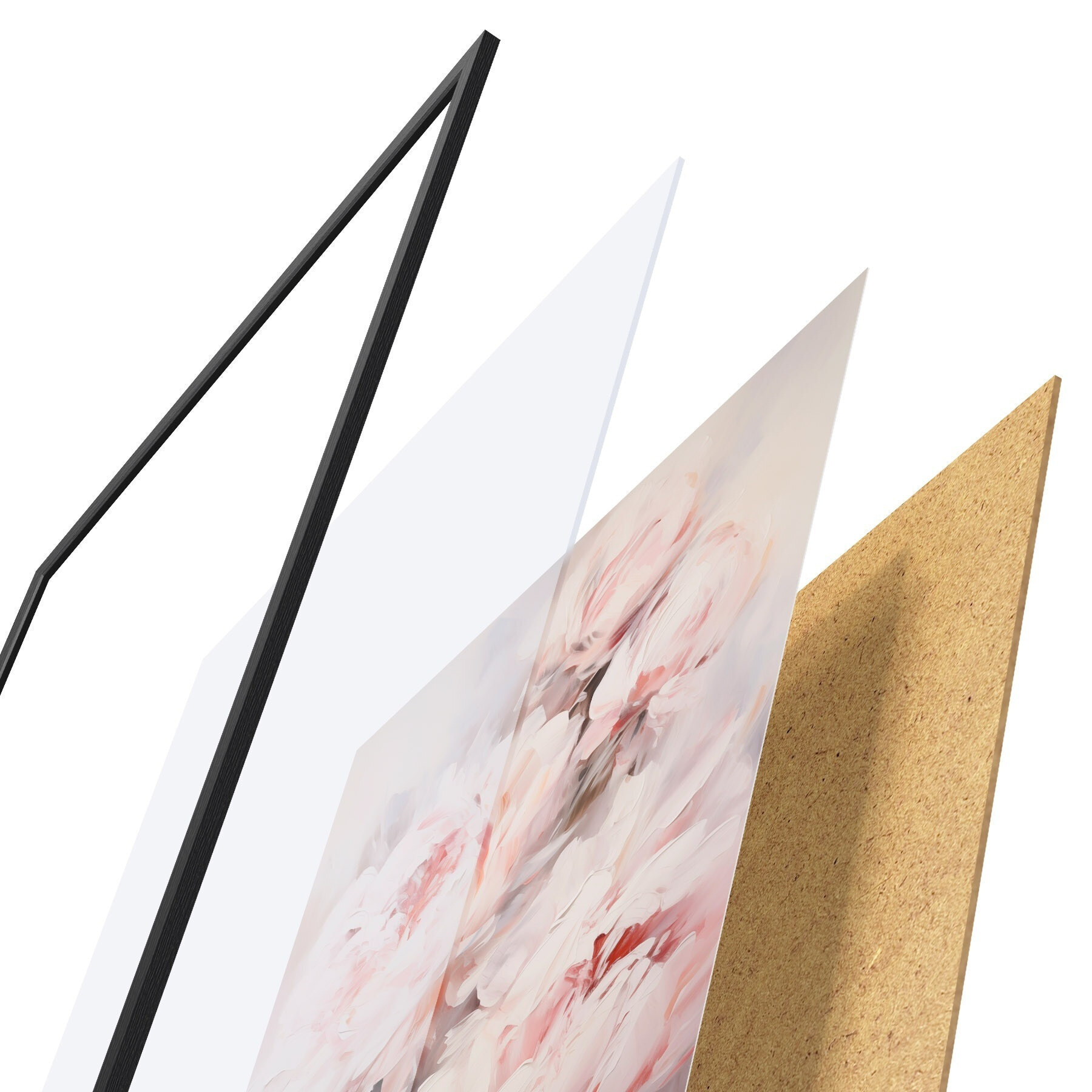 A poszter keretből, plexiből, nyomtatott képből és forgácslap hátlapból áll. A poszter a hátoldalon található rögzítőknek köszönhetően azonnal felakasztható a falra.