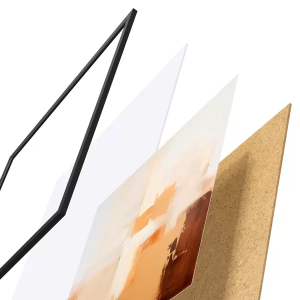 A poszter keretből, plexiből, nyomtatott képből és forgácslap hátlapból áll. A poszter a hátoldalon található rögzítőknek köszönhetően azonnal felakasztható a falra.