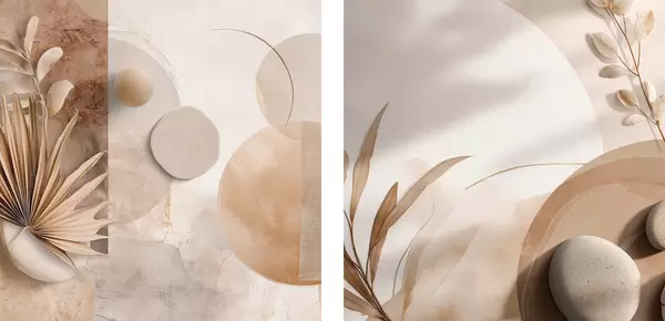 Poster Két vászon, szárított levelekkel és texturált formákkal Nr d00893