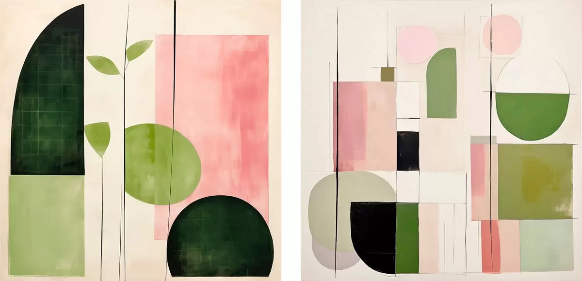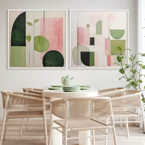 Poster Minimalista diptichon stilizált növényvilággal és geometriával Nr d00894