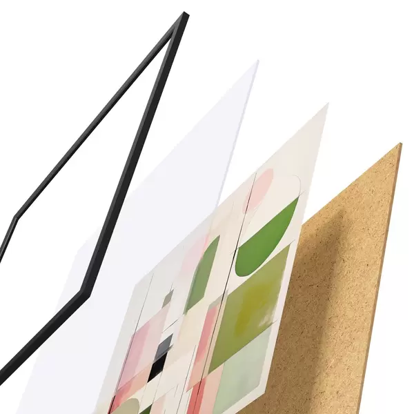 A poszter keretből, plexiből, nyomtatott képből és forgácslap hátlapból áll. A poszter a hátoldalon található rögzítőknek köszönhetően azonnal felakasztható a falra.