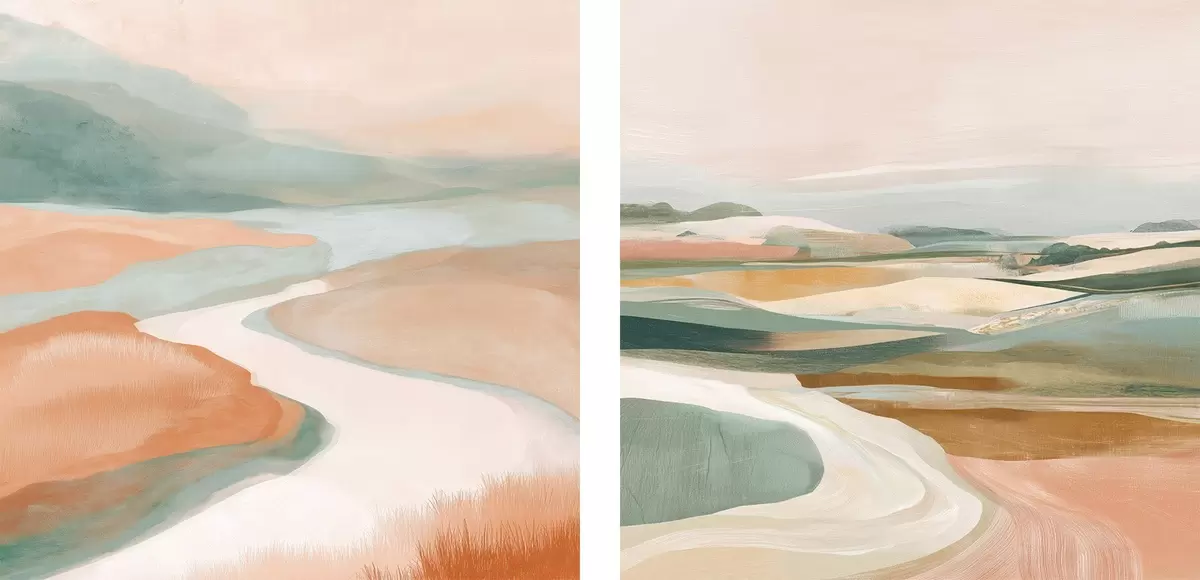 Poster Absztrakt dombok és folyó pasztell színpalettán Nr d00896