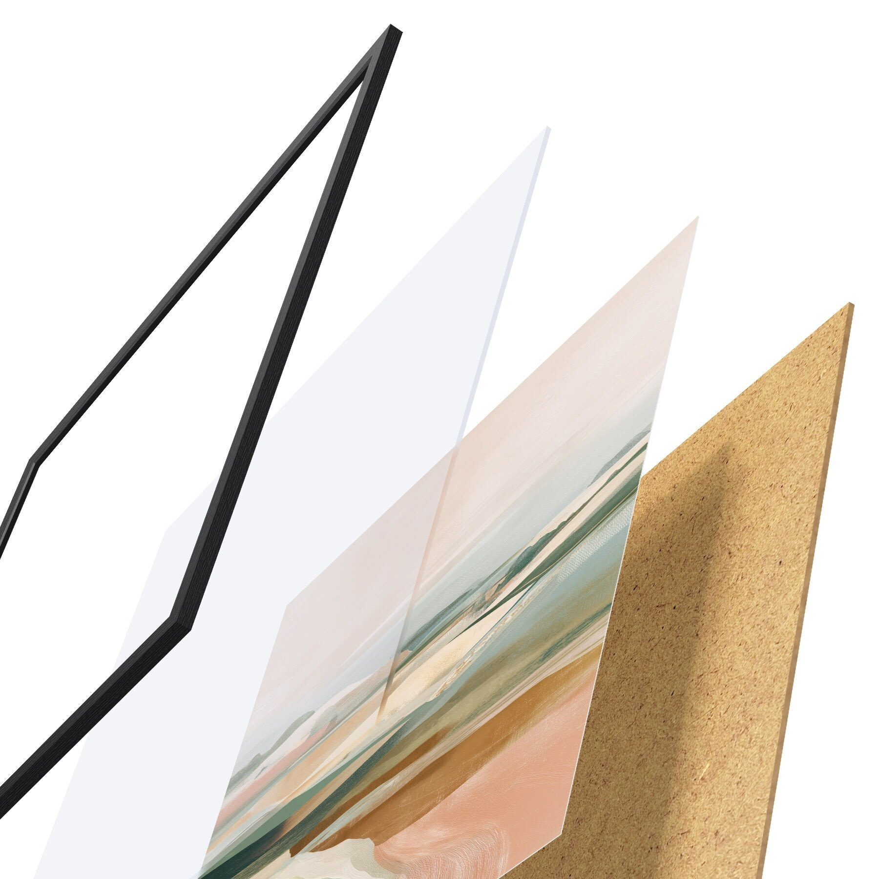 A poszter keretből, plexiből, nyomtatott képből és forgácslap hátlapból áll. A poszter a hátoldalon található rögzítőknek köszönhetően azonnal felakasztható a falra.