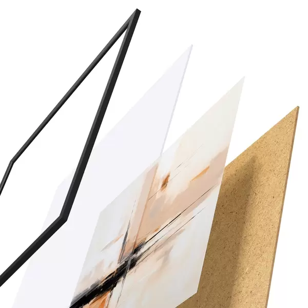 A poszter keretből, plexiből, nyomtatott képből és forgácslap hátlapból áll. A poszter a hátoldalon található rögzítőknek köszönhetően azonnal felakasztható a falra.