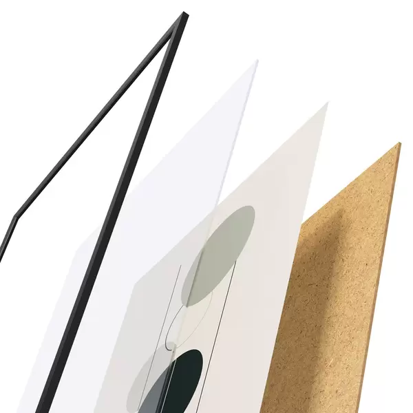 A poszter keretből, plexiből, nyomtatott képből és forgácslap hátlapból áll. A poszter a hátoldalon található rögzítőknek köszönhetően azonnal felakasztható a falra.