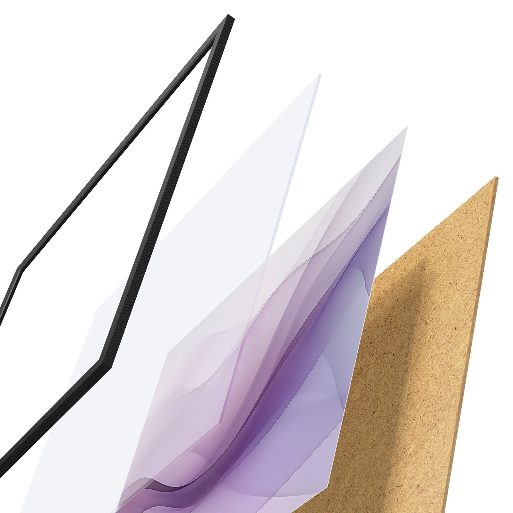 A poszter keretből, plexiből, nyomtatott képből és forgácslap hátlapból áll. A poszter a hátoldalon található rögzítőknek köszönhetően azonnal felakasztható a falra.