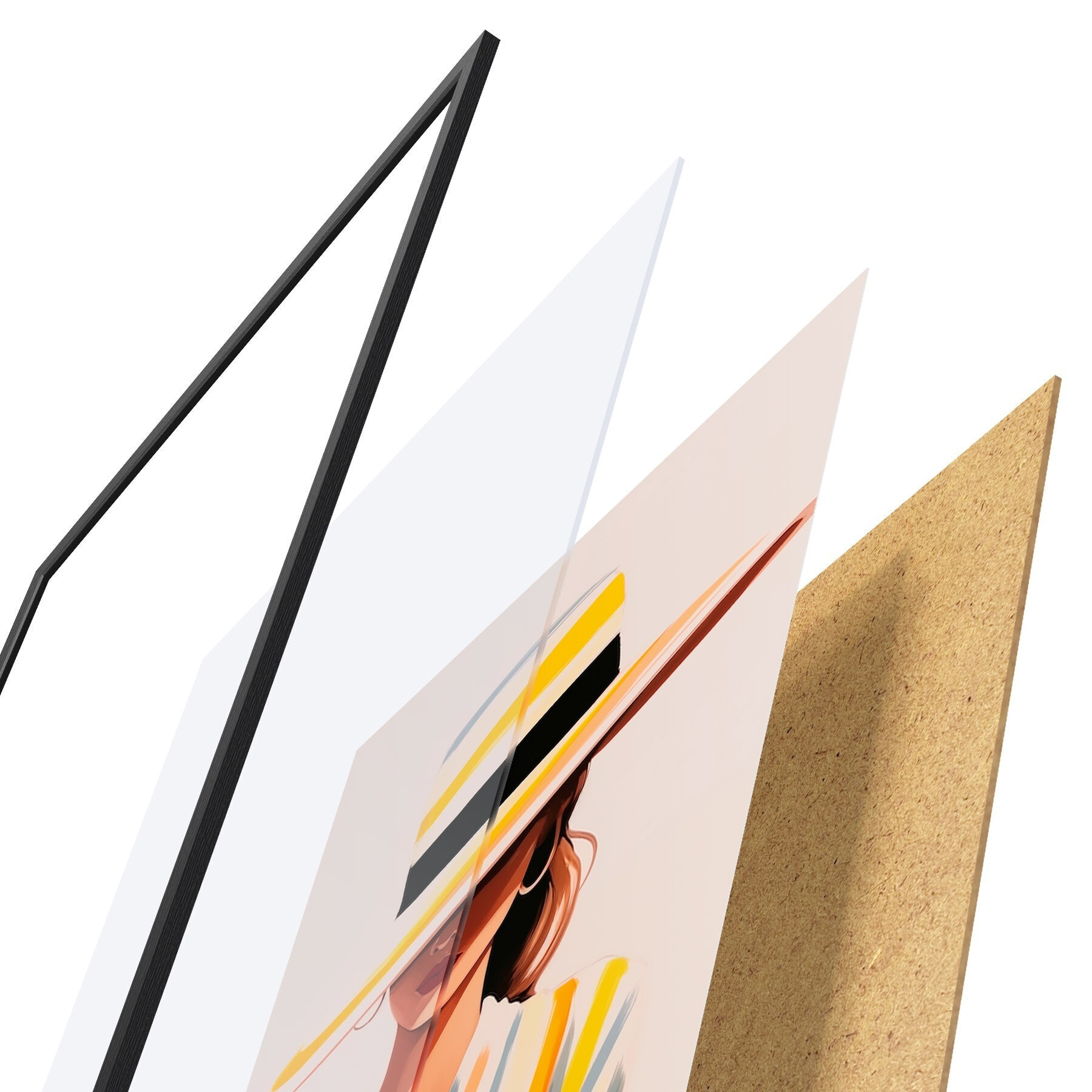 A poszter keretből, plexiből, nyomtatott képből és forgácslap hátlapból áll. A poszter a hátoldalon található rögzítőknek köszönhetően azonnal felakasztható a falra.