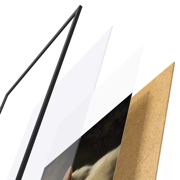 A poszter keretből, plexiből, nyomtatott képből és forgácslap hátlapból áll. A poszter a hátoldalon található rögzítőknek köszönhetően azonnal felakasztható a falra.