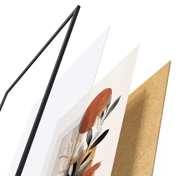 A poszter keretből, plexiből, nyomtatott képből és forgácslap hátlapból áll. A poszter a hátoldalon található rögzítőknek köszönhetően azonnal felakasztható a falra.