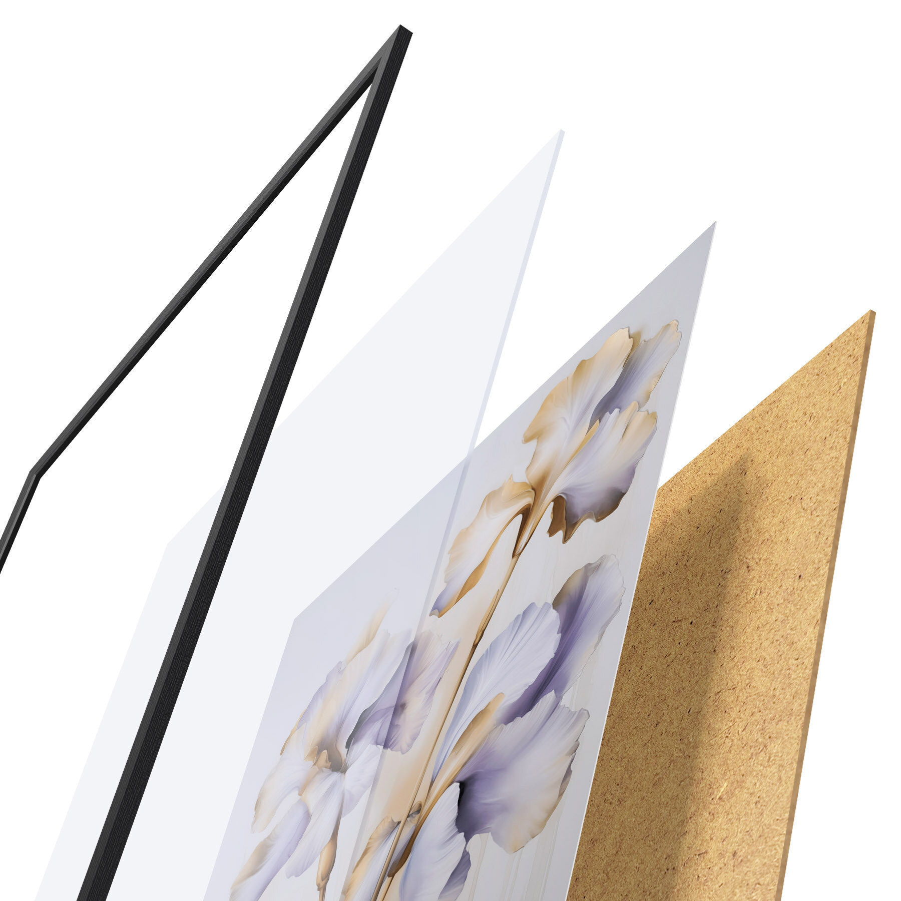 A poszter keretből, plexiből, nyomtatott képből és forgácslap hátlapból áll. A poszter a hátoldalon található rögzítőknek köszönhetően azonnal felakasztható a falra.