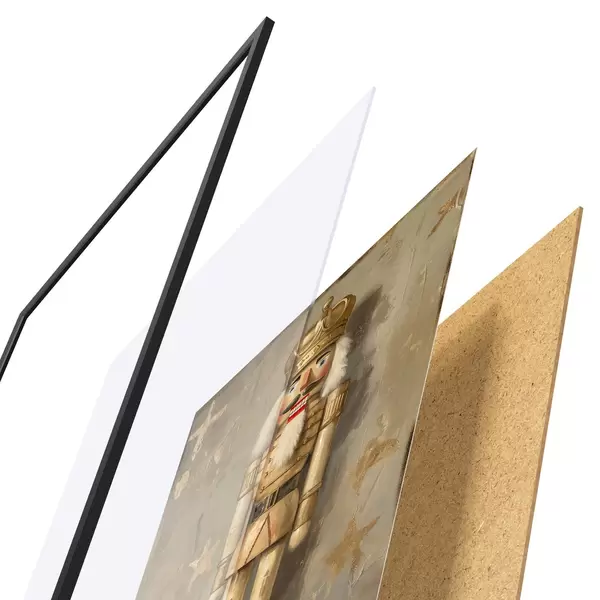 A poszter keretből, plexiből, nyomtatott képből és forgácslap hátlapból áll. A poszter a hátoldalon található rögzítőknek köszönhetően azonnal felakasztható a falra.