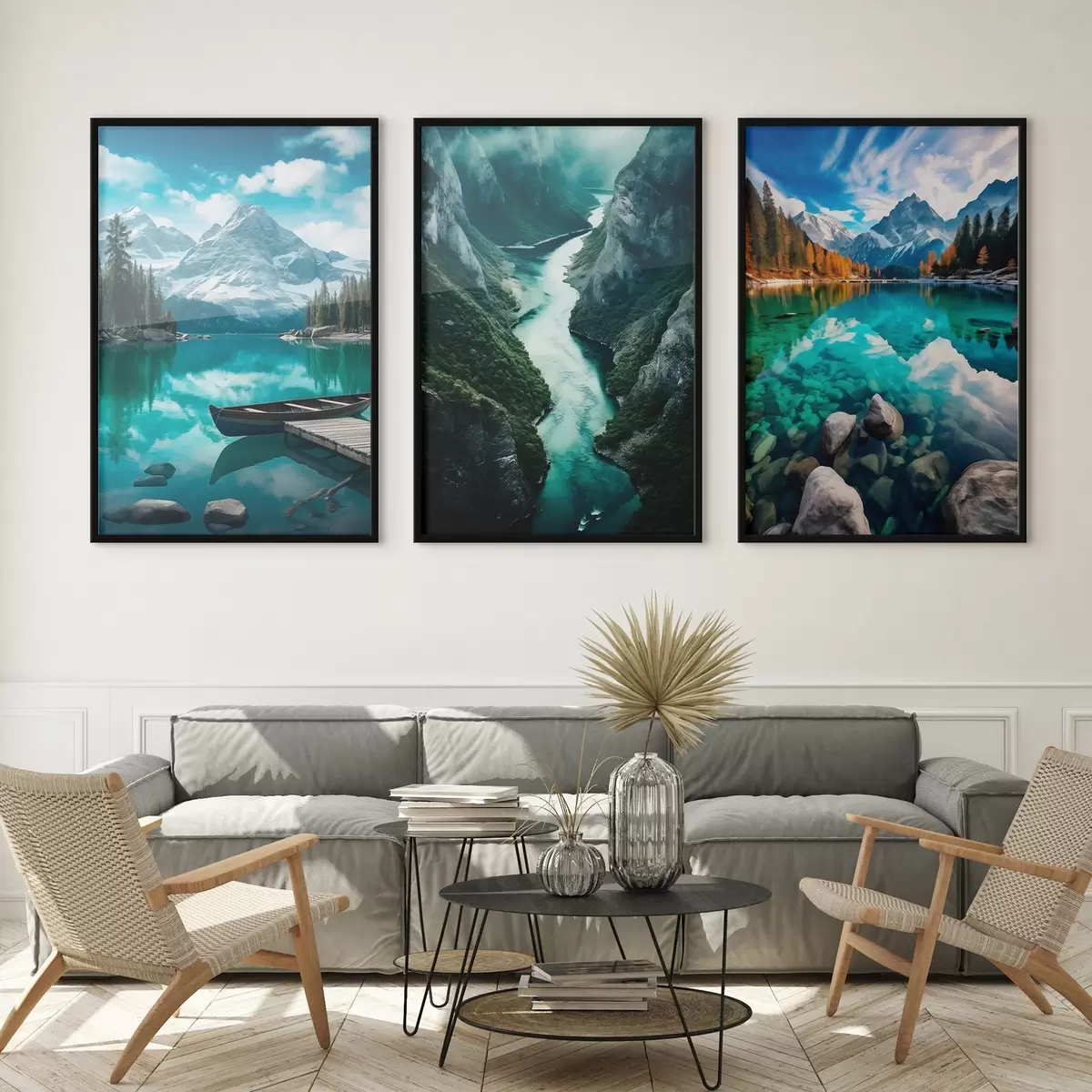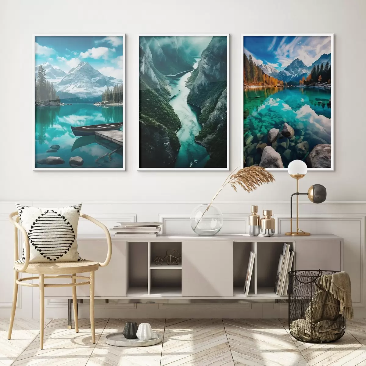 Poster Alpesi tavak és fjordok látványa hűvös türkizkék árnyalatokban Nr d00961