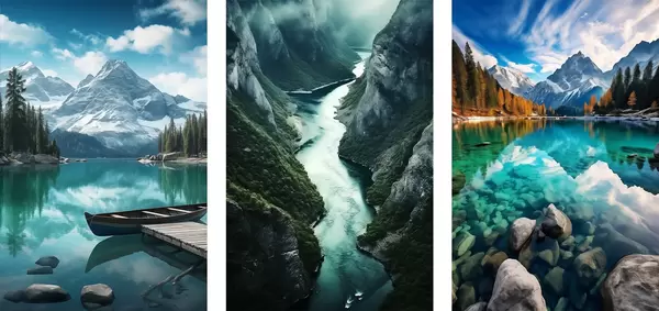 Poster Alpesi tavak és fjordok látványa hűvös türkizkék árnyalatokban Nr d00961