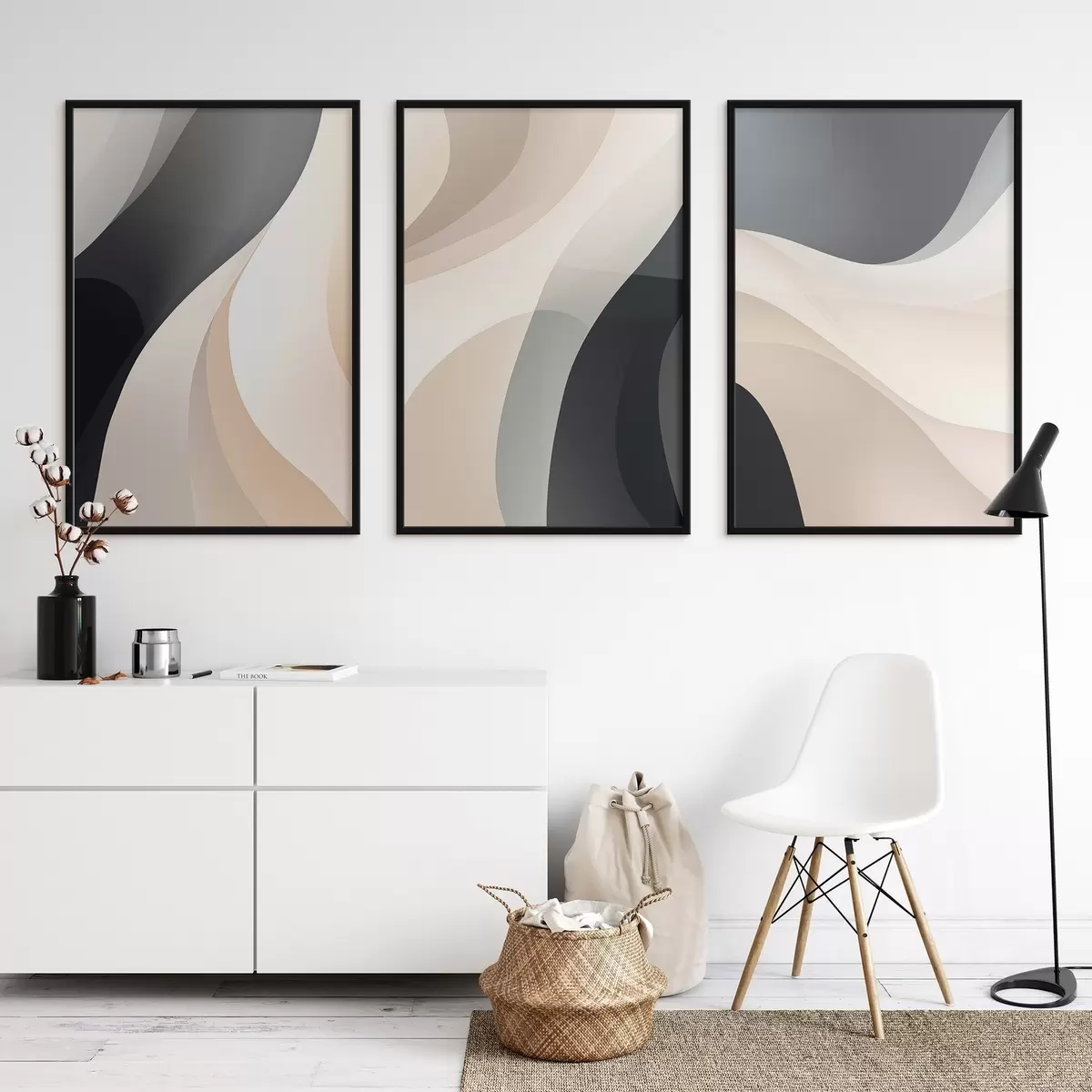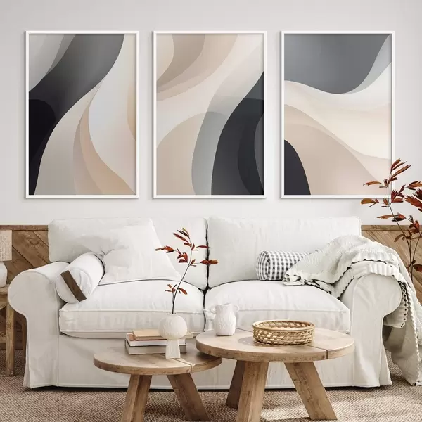Poster Minimális, áramló görbék krém, szürkésbarna és fekete színekben Nr d00962