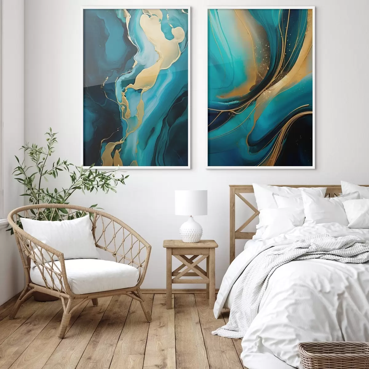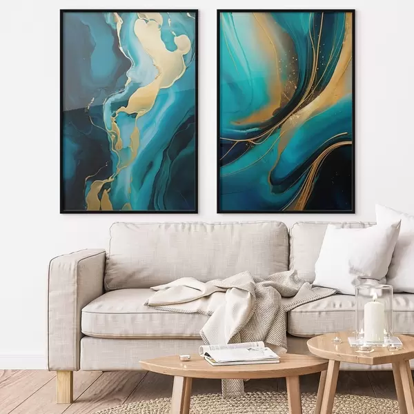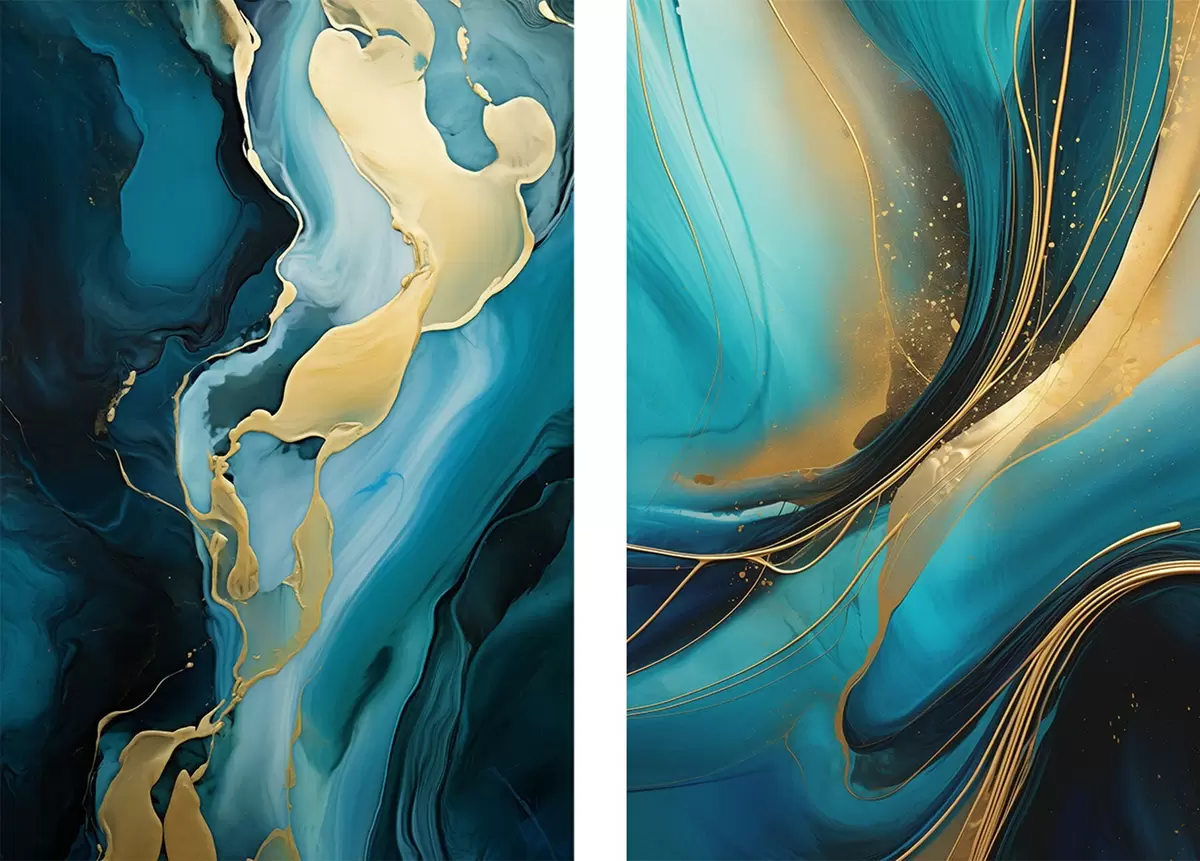 Poster Teal színű folyadék absztrakt, meleg fémes áramlatokkal Nr d00965