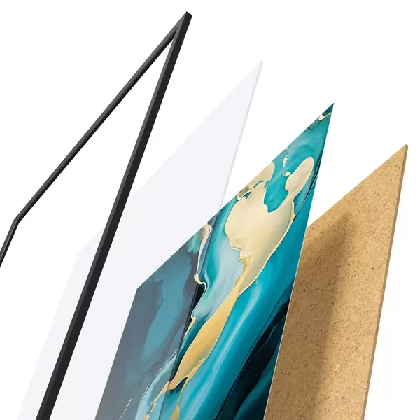 A poszter keretből, plexiből, nyomtatott képből és forgácslap hátlapból áll. A poszter a hátoldalon található rögzítőknek köszönhetően azonnal felakasztható a falra.