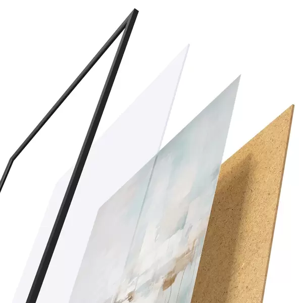 A poszter keretből, plexiből, nyomtatott képből és forgácslap hátlapból áll. A poszter a hátoldalon található rögzítőknek köszönhetően azonnal felakasztható a falra.