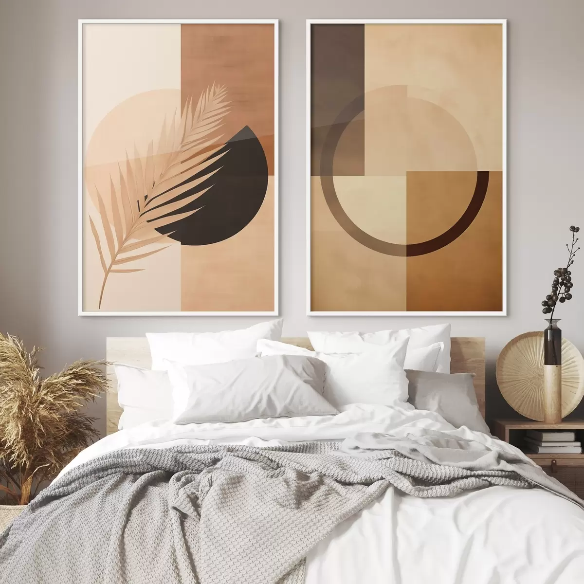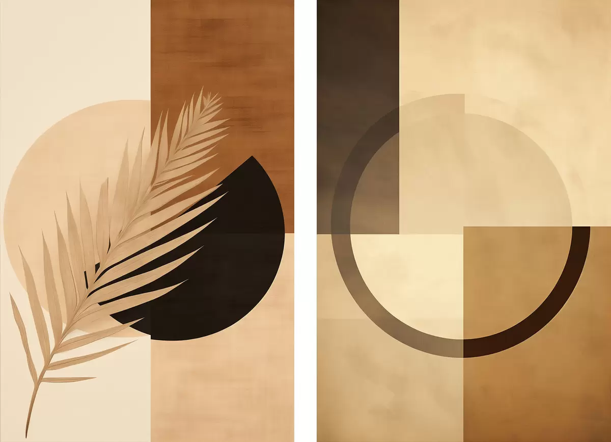 Poster Terrakotta és bézs geometriai minták pálmalevél motívummal Nr d00968