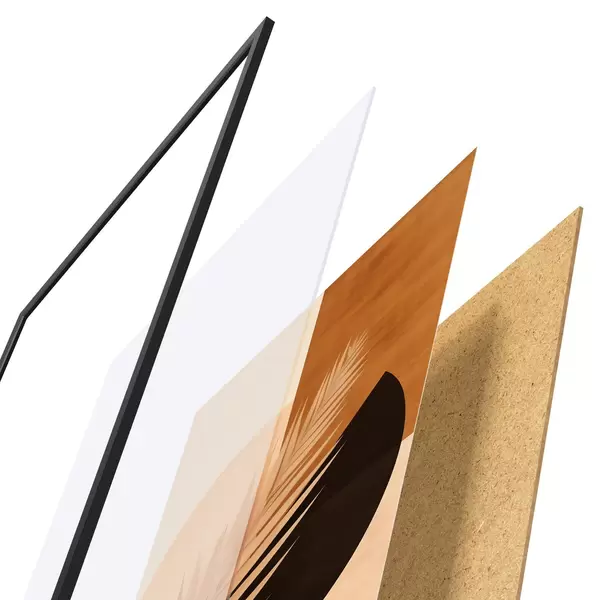 A poszter keretből, plexiből, nyomtatott képből és forgácslap hátlapból áll. A poszter a hátoldalon található rögzítőknek köszönhetően azonnal felakasztható a falra.