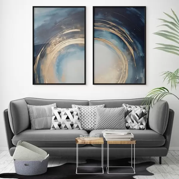 Poster Éjfélkék kör alakú, fémes ívekkel Nr d00969