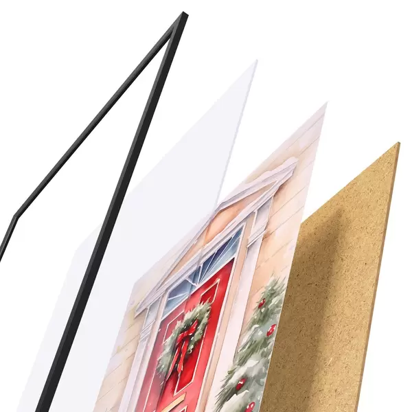 A poszter keretből, plexiből, nyomtatott képből és forgácslap hátlapból áll. A poszter a hátoldalon található rögzítőknek köszönhetően azonnal felakasztható a falra.