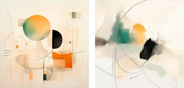 Poster Absztrakt diptichon kör alakú formákkal és dinamikus vonalakkal Nr d00981