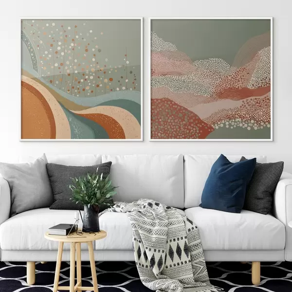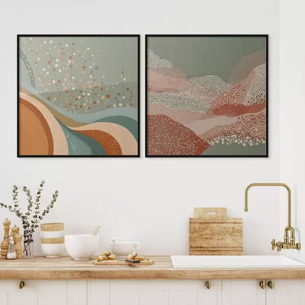 Poster Kétrészes absztrakt táj pontokkal és hullámzó elemekkel Nr d00987