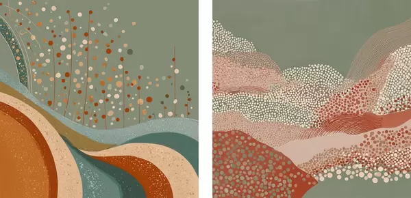 Poster Kétrészes absztrakt táj pontokkal és hullámzó elemekkel Nr d00987