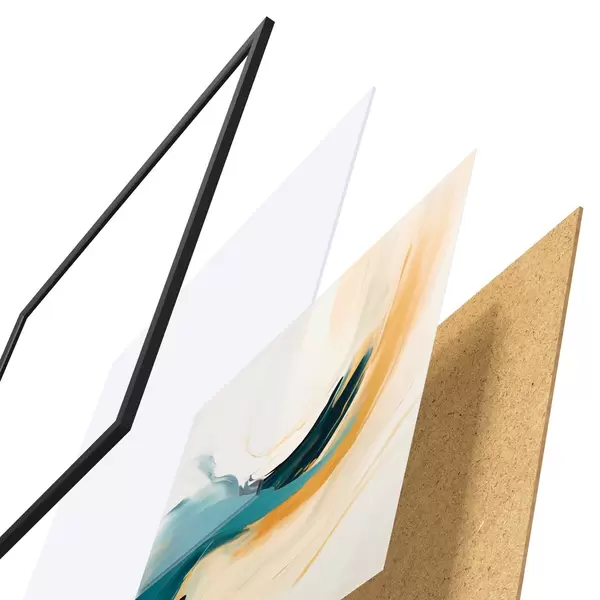 A poszter keretből, plexiből, nyomtatott képből és forgácslap hátlapból áll. A poszter a hátoldalon található rögzítőknek köszönhetően azonnal felakasztható a falra.
