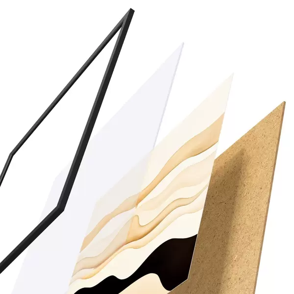 A poszter keretből, plexiből, nyomtatott képből és forgácslap hátlapból áll. A poszter a hátoldalon található rögzítőknek köszönhetően azonnal felakasztható a falra.