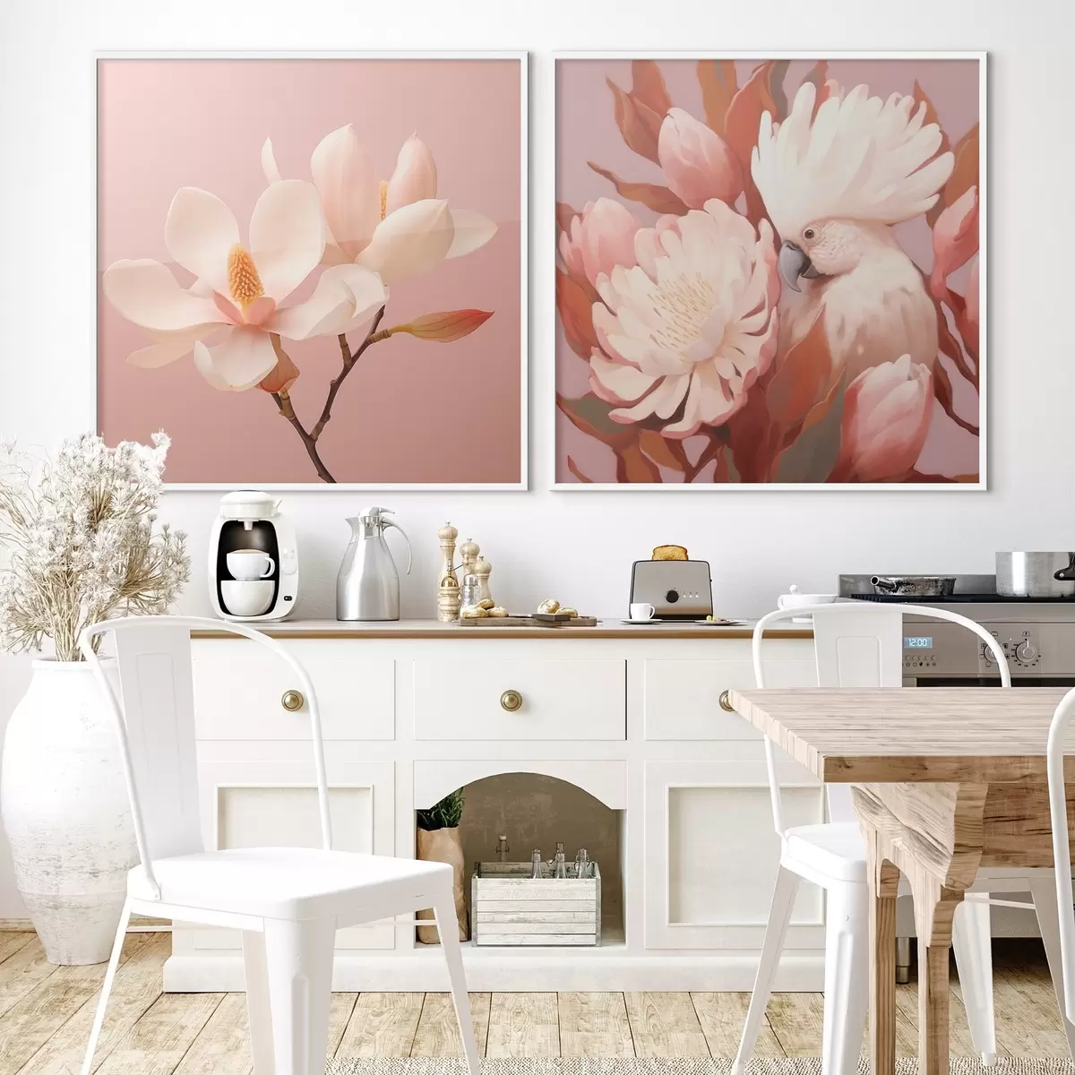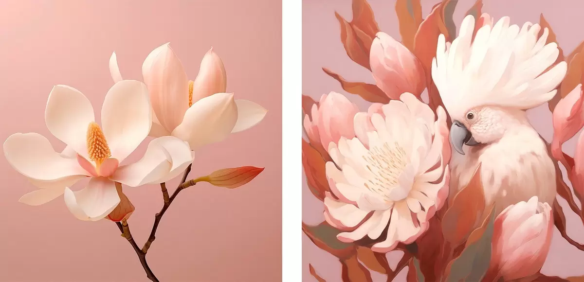 Poster Virágkompozíció madárral, művészi illusztrációs stílusban Nr d00994