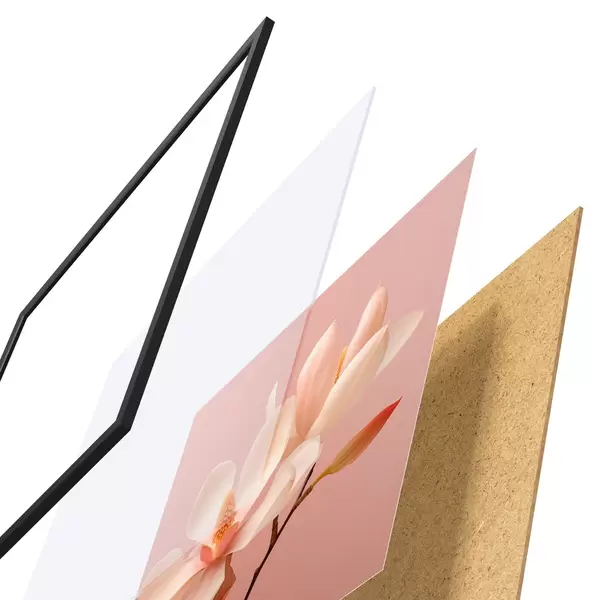 A poszter keretből, plexiből, nyomtatott képből és forgácslap hátlapból áll. A poszter a hátoldalon található rögzítőknek köszönhetően azonnal felakasztható a falra.