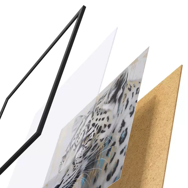 A poszter keretből, plexiből, nyomtatott képből és forgácslap hátlapból áll. A poszter a hátoldalon található rögzítőknek köszönhetően azonnal felakasztható a falra.