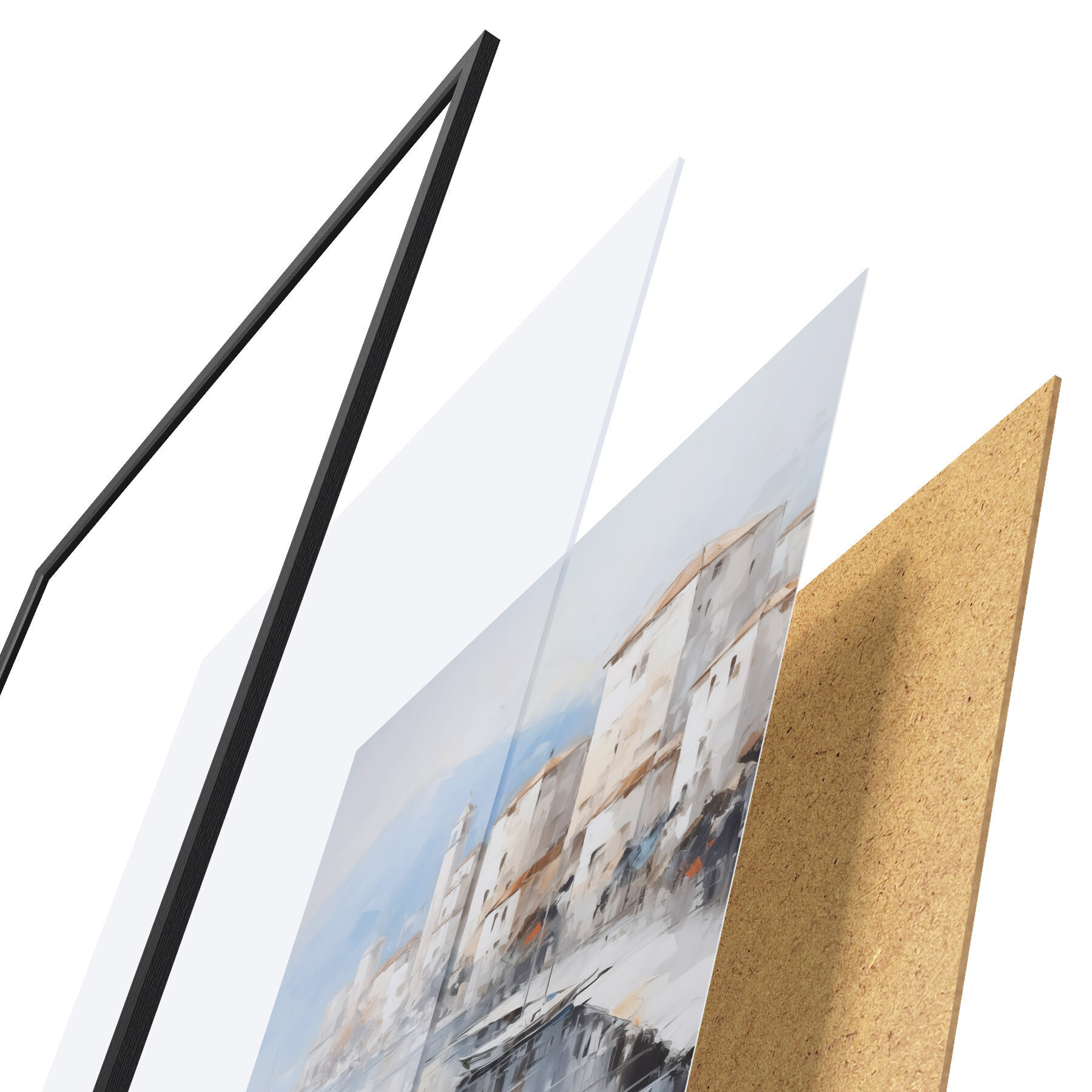 A poszter keretből, plexiből, nyomtatott képből és forgácslap hátlapból áll. A poszter a hátoldalon található rögzítőknek köszönhetően azonnal felakasztható a falra.