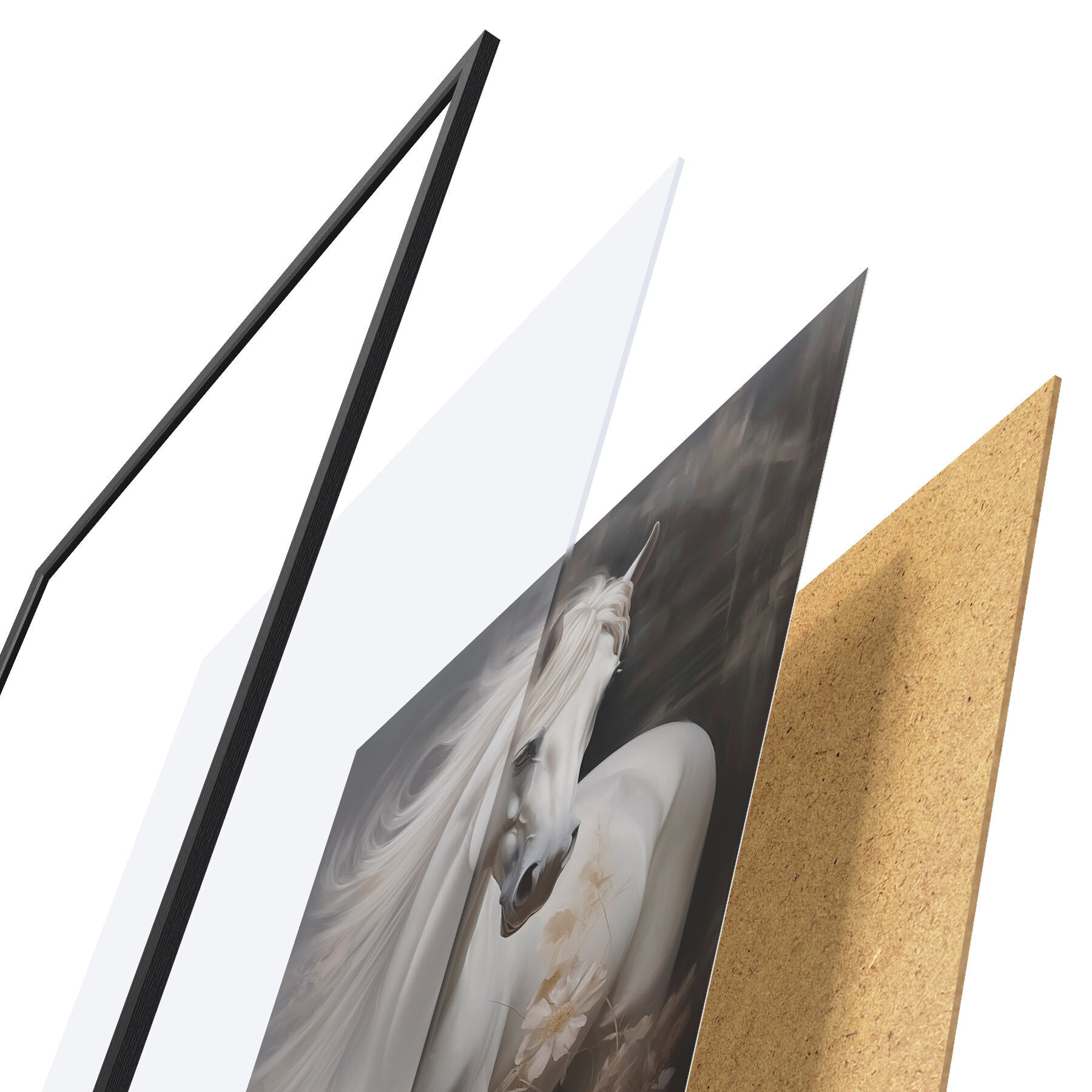 A poszter keretből, plexiből, nyomtatott képből és forgácslap hátlapból áll. A poszter a hátoldalon található rögzítőknek köszönhetően azonnal felakasztható a falra.