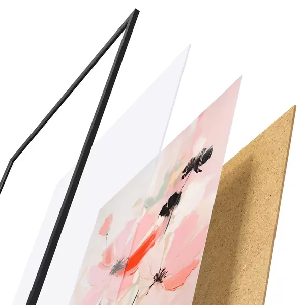 A poszter keretből, plexiből, nyomtatott képből és forgácslap hátlapból áll. A poszter a hátoldalon található rögzítőknek köszönhetően azonnal felakasztható a falra.