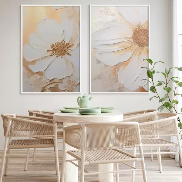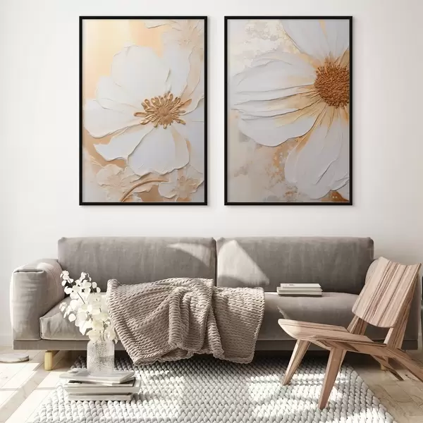 Poster Finom szirmú fehér virág, texturált absztrakt háttér, elegáns, dekoratív művészet Nr d01006