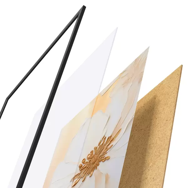 A poszter keretből, plexiből, nyomtatott képből és forgácslap hátlapból áll. A poszter a hátoldalon található rögzítőknek köszönhetően azonnal felakasztható a falra.