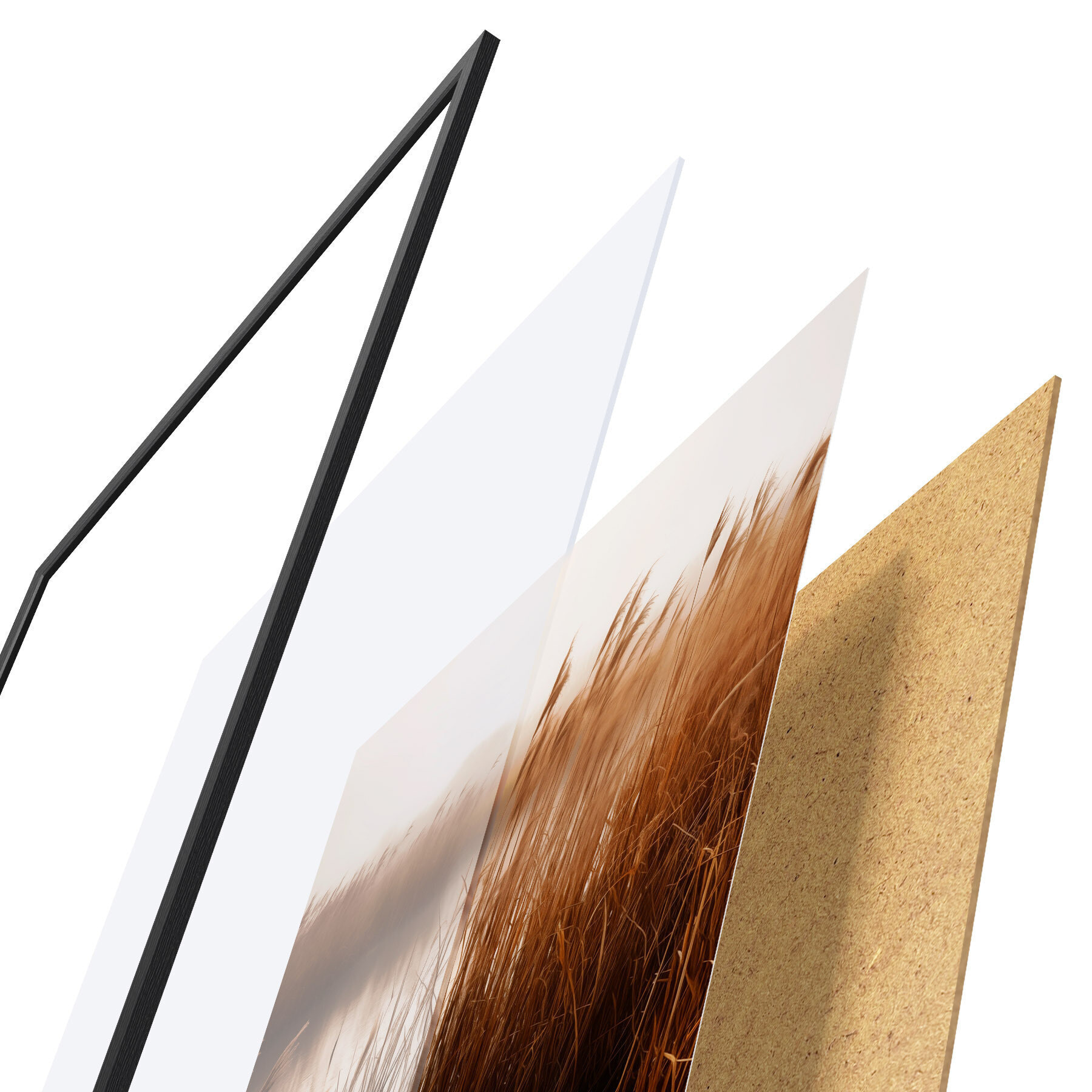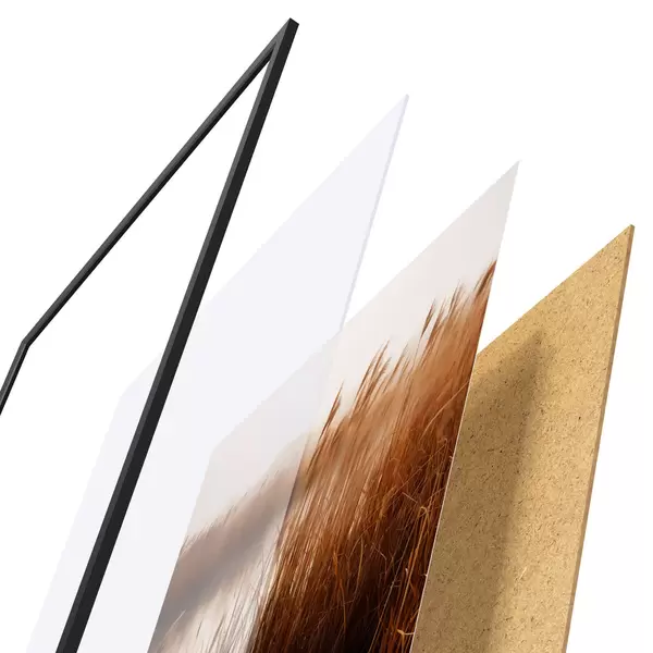 A poszter keretből, plexiből, nyomtatott képből és forgácslap hátlapból áll. A poszter a hátoldalon található rögzítőknek köszönhetően azonnal felakasztható a falra.